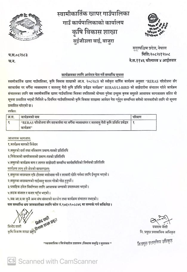 कार्यक्रमका लागि आवेदन पेश गर्ने सम्बन्धी सूचना