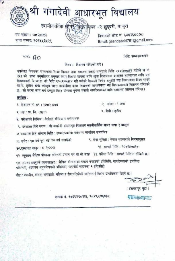 » शिक्षक विज्ञापन सम्बन्धी सूचना ।