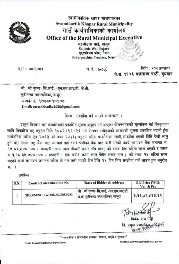 » सम्झौता गर्न आउने सम्बन्धी सूचना (SKKRM/NCB/WORK/02/2082/083)