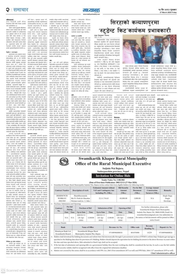 » Invitation for Bids (SKKRM/NCB/WORK/03/2082/083)